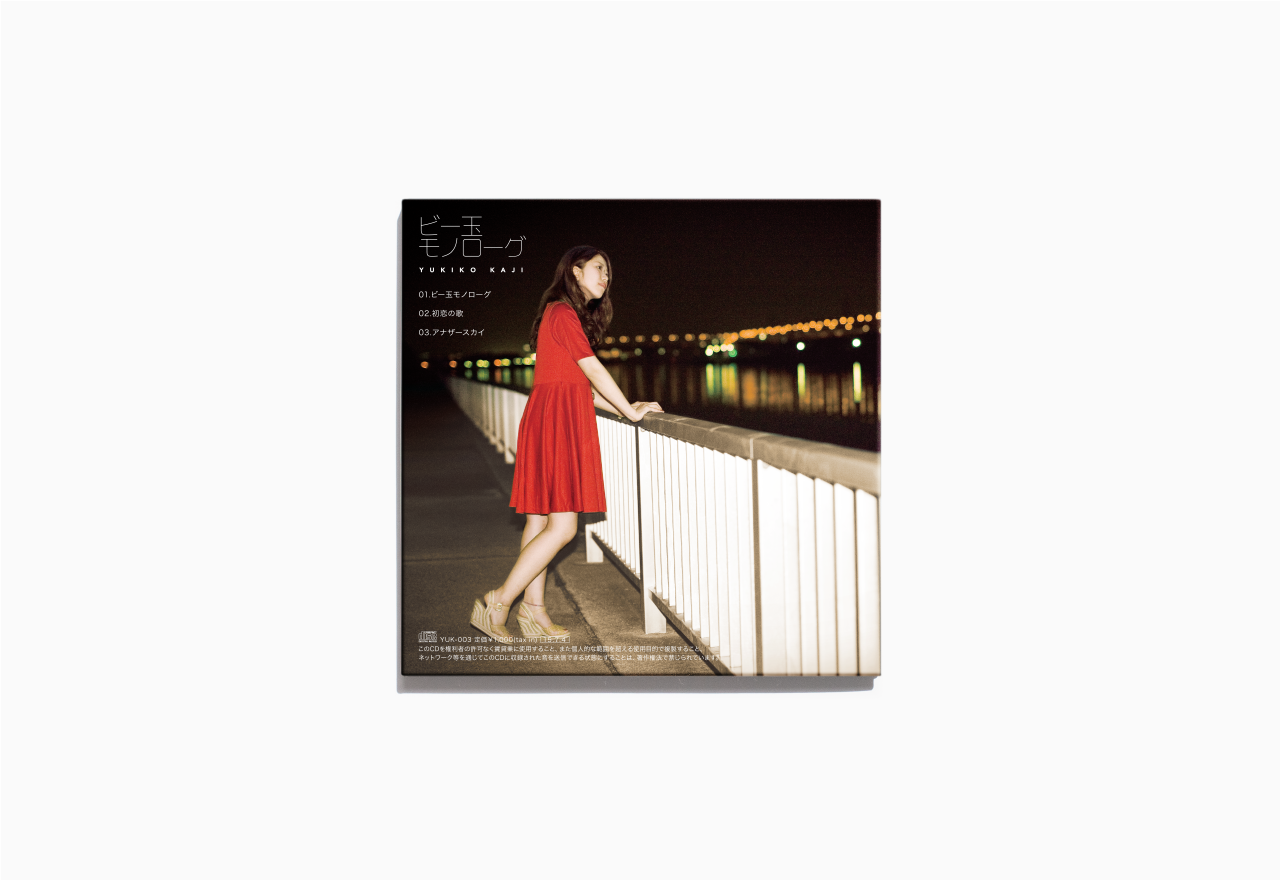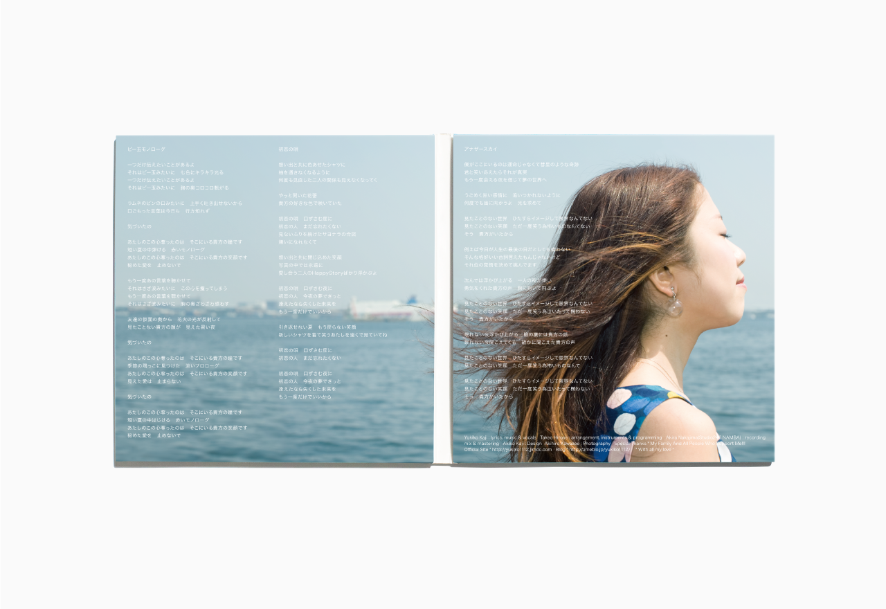 CDシングルのデザイン。収録曲のコントラストをテーマにデザインしています。夜の世界の中に真っ赤なドレスで佇むアーティストはマイナーでキャッチーな楽曲のイメージを、ジャケットを開くと現れる海辺で髪をなびかせるアーティストはカップリング曲の爽やかな楽曲イメージを表現しています。相反するビジュアルがインパクトを与えるデザインです。